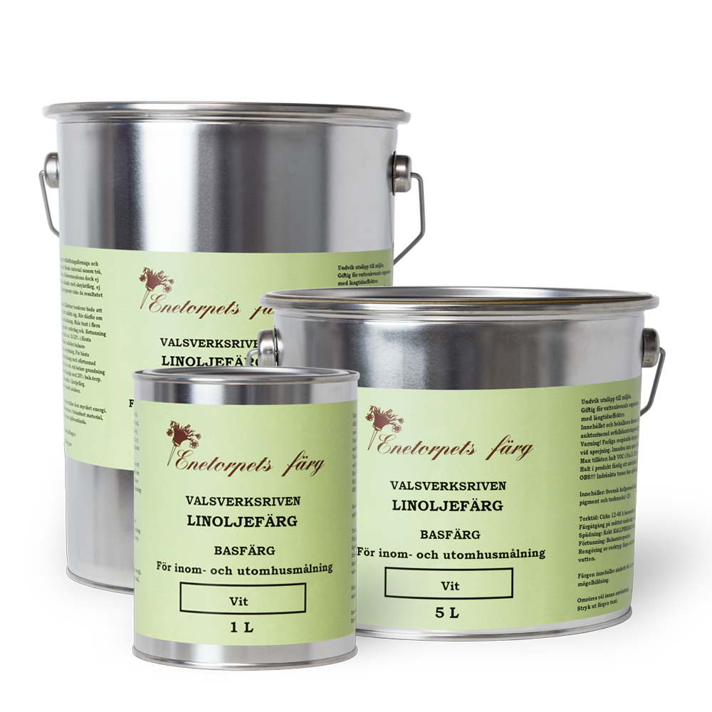 Våra linoljefärger är av högsta kvalitet. Färgen kan användas såväl utomhus som inomhus och på de flesta underlag om inget annat anges. Färgen består av linolja och pigment och motverkar alg- och mögelangrepp.